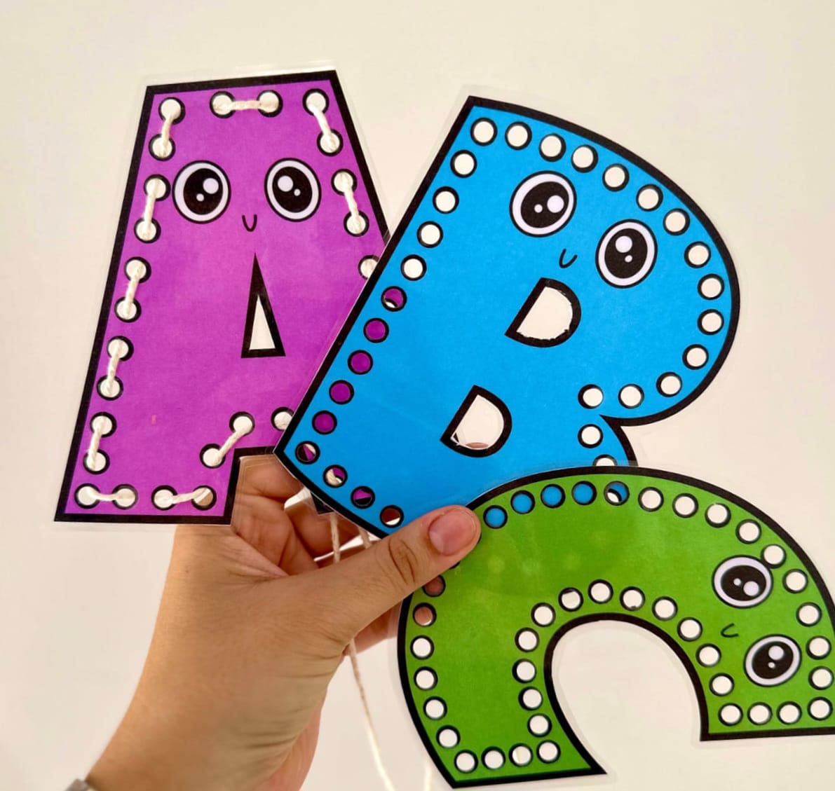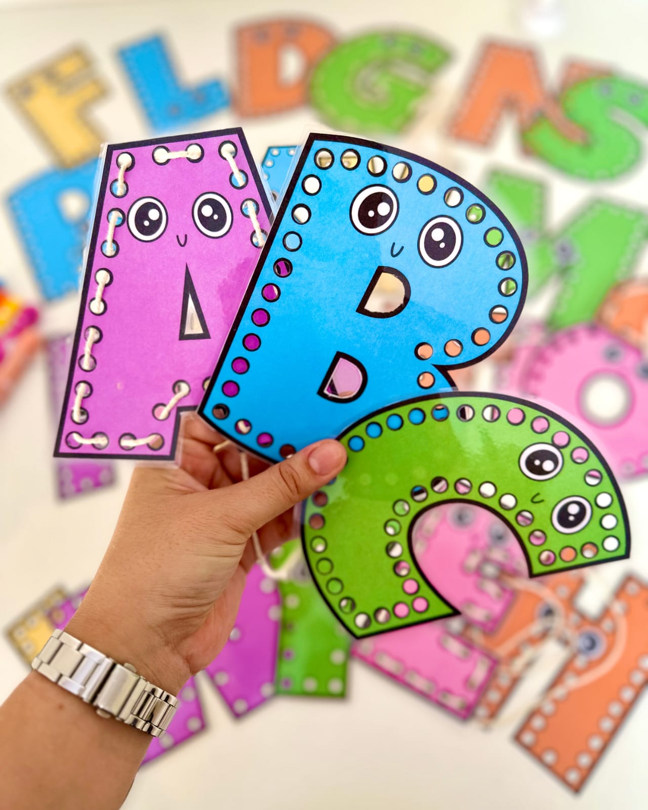 Alinhavos de todas as letras do Alfabeto para trabalhar coordenação motora fina com crianças em fase de alfabetização!
