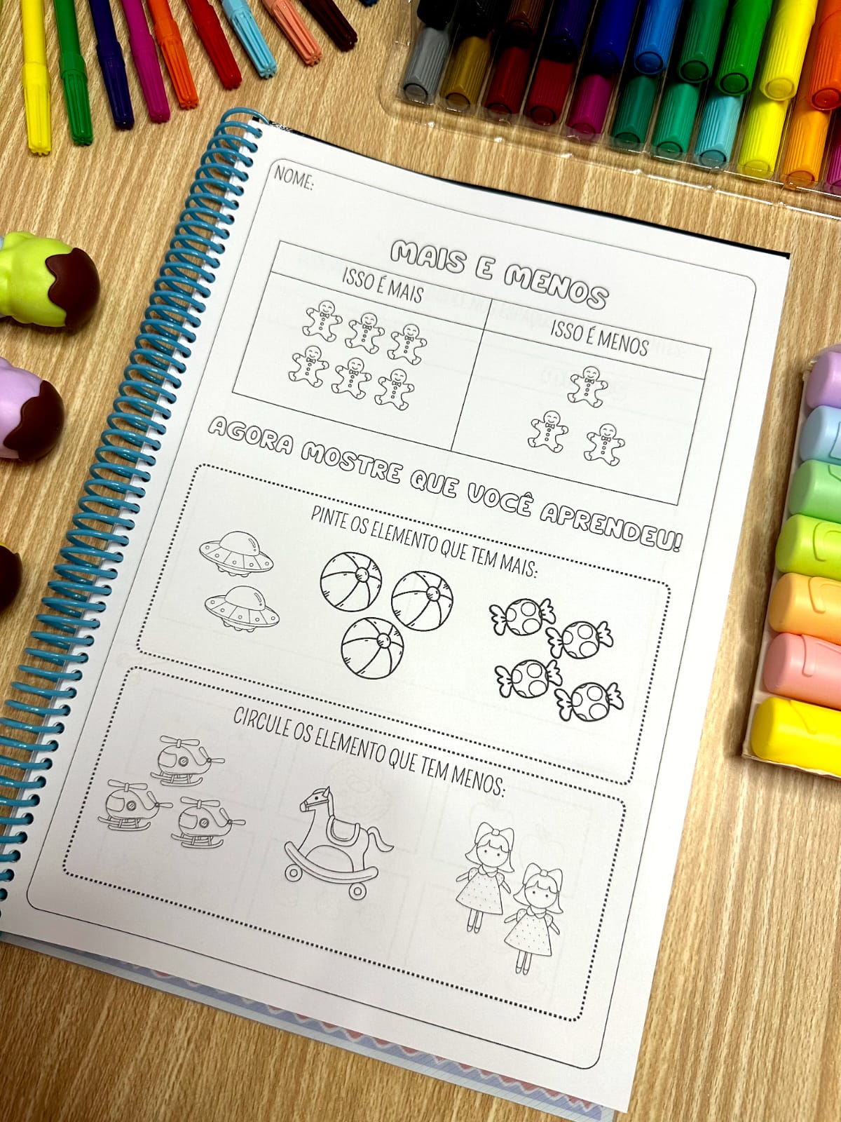 Recurso com 36 páginas de atividades para trabalhar conceitos matemáticos com crianças em fase de alfabetização numérica, incentivando raciocínio e capacidade de análise quantitativa/ qualitativa.