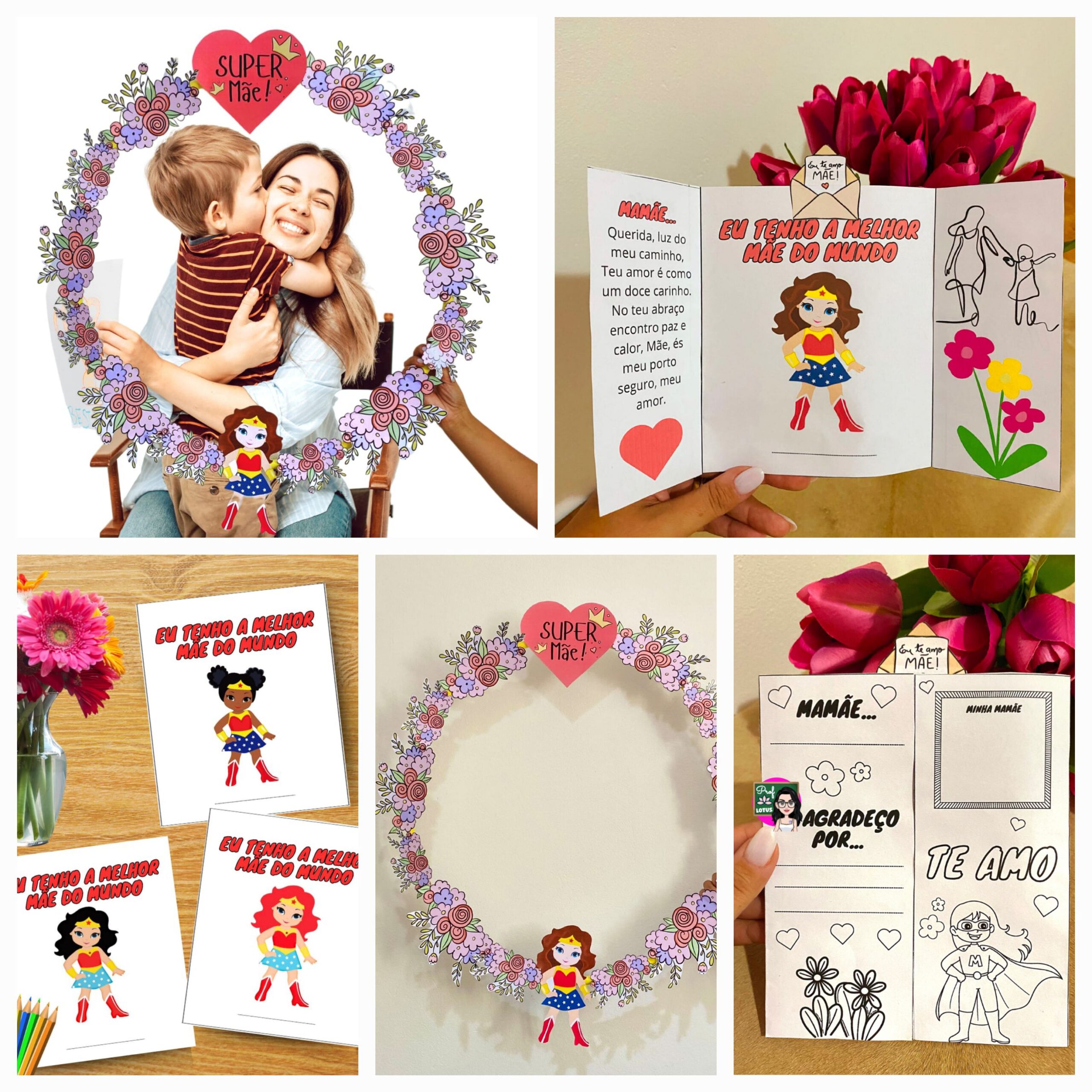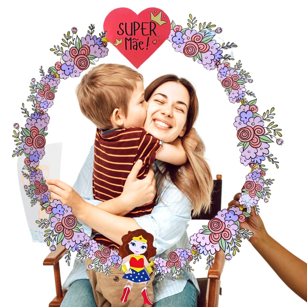 Arte para bambolê para moldura para fazer lindas fotos com o tema dias das mães + Lapbook com capa colorida e abas para colorir.