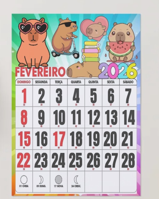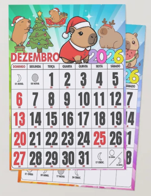 CALENDÁRIO MESES 2026 CAPIVARAS