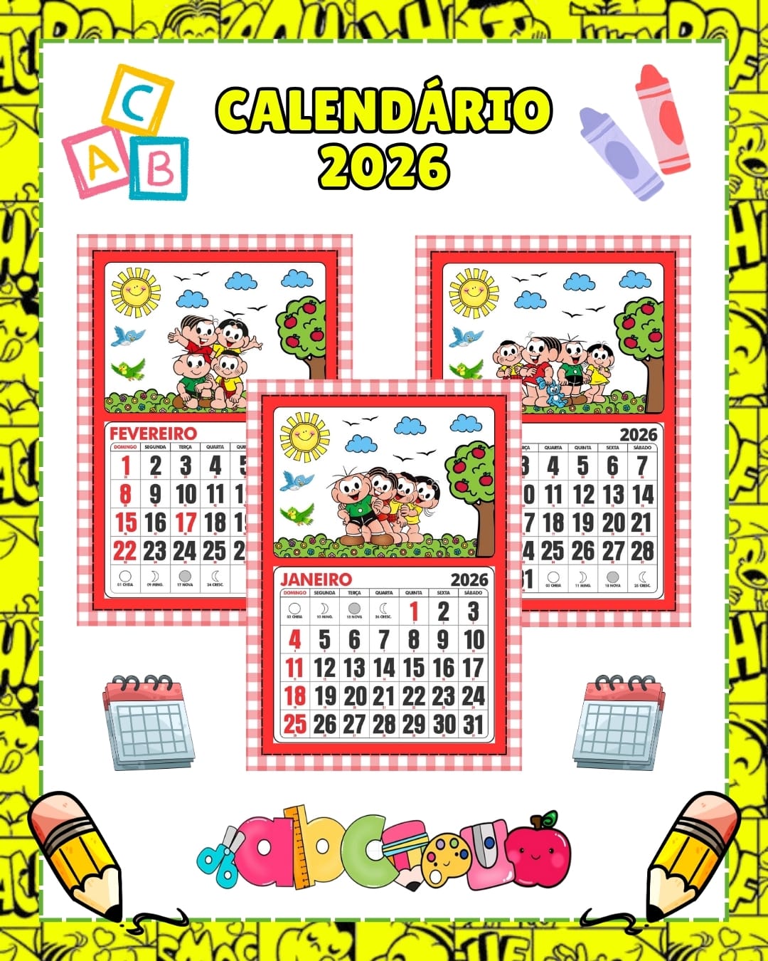 CALENDÁRIO MESES DO ANO 2026 TURMA DA MÔNICA