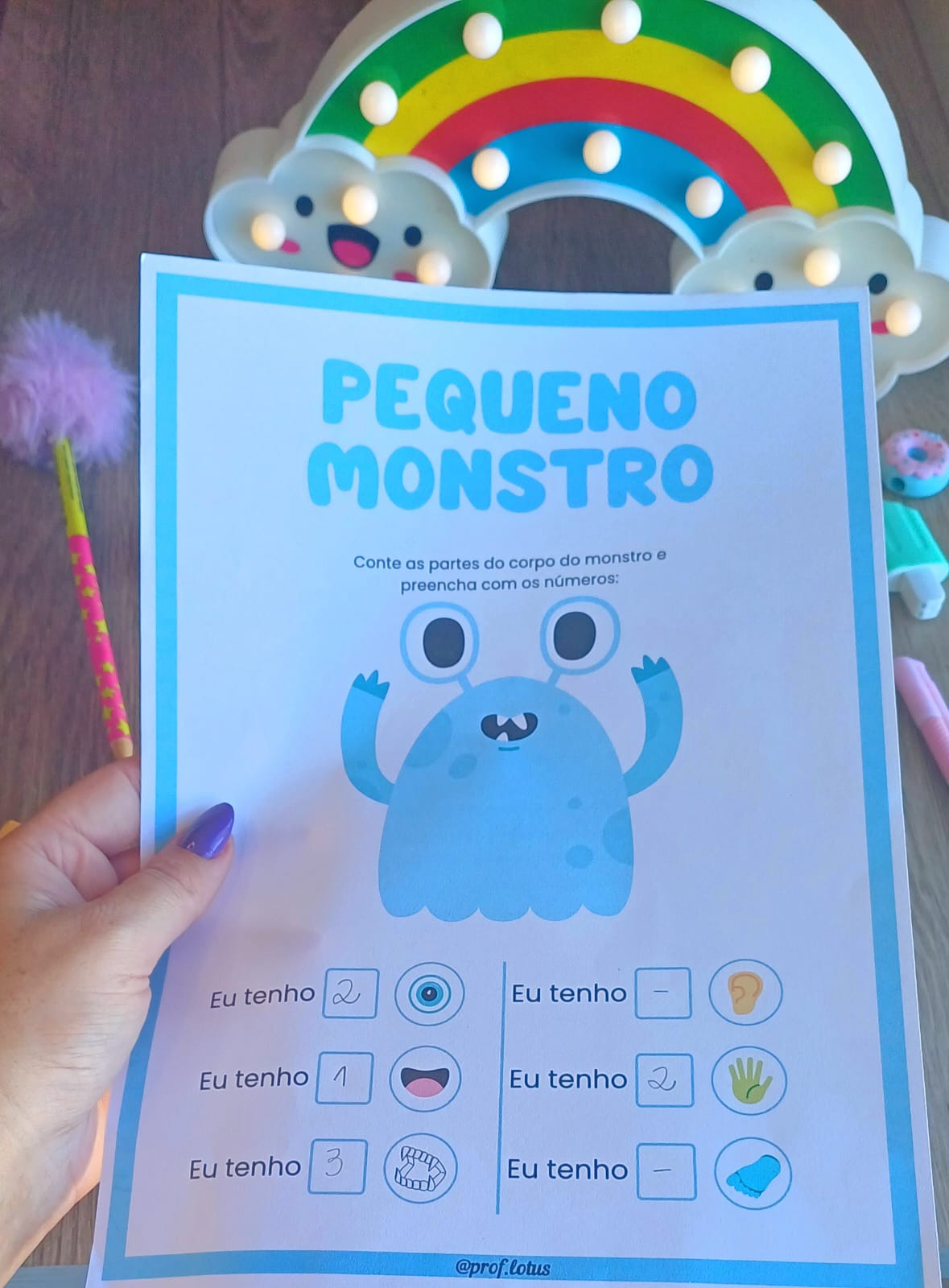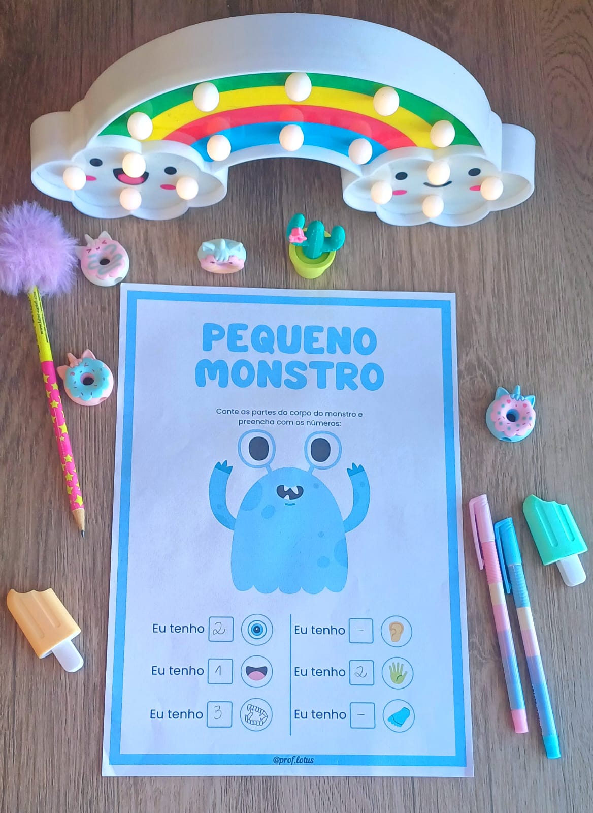 20 páginas coloridas de atividades para contar partes dos monstrinhos