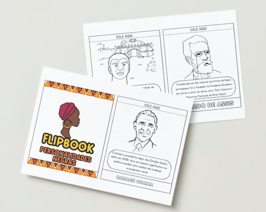 Livrinho com descrição e imagem em desenhos para colorir com 17 personalidades importantes que fizeram a diferença na luta contra o r4cismo e diferenças étnicas para abordar o tema consciência negra com muito de forma muito mais significativa!
