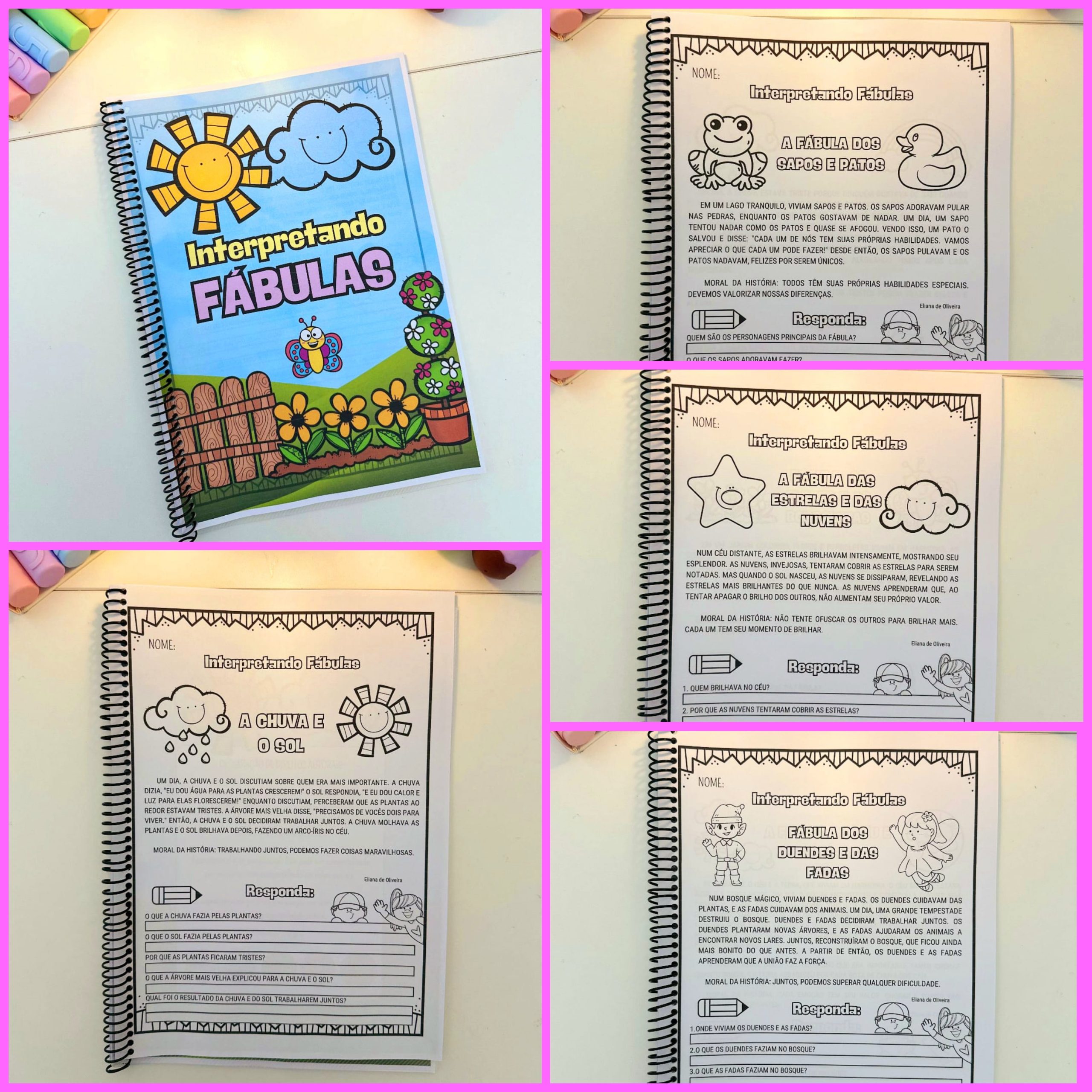 Recurso com a proposta de leitura e interpretação de 20 pequenas fábulas ilustradas para colorir