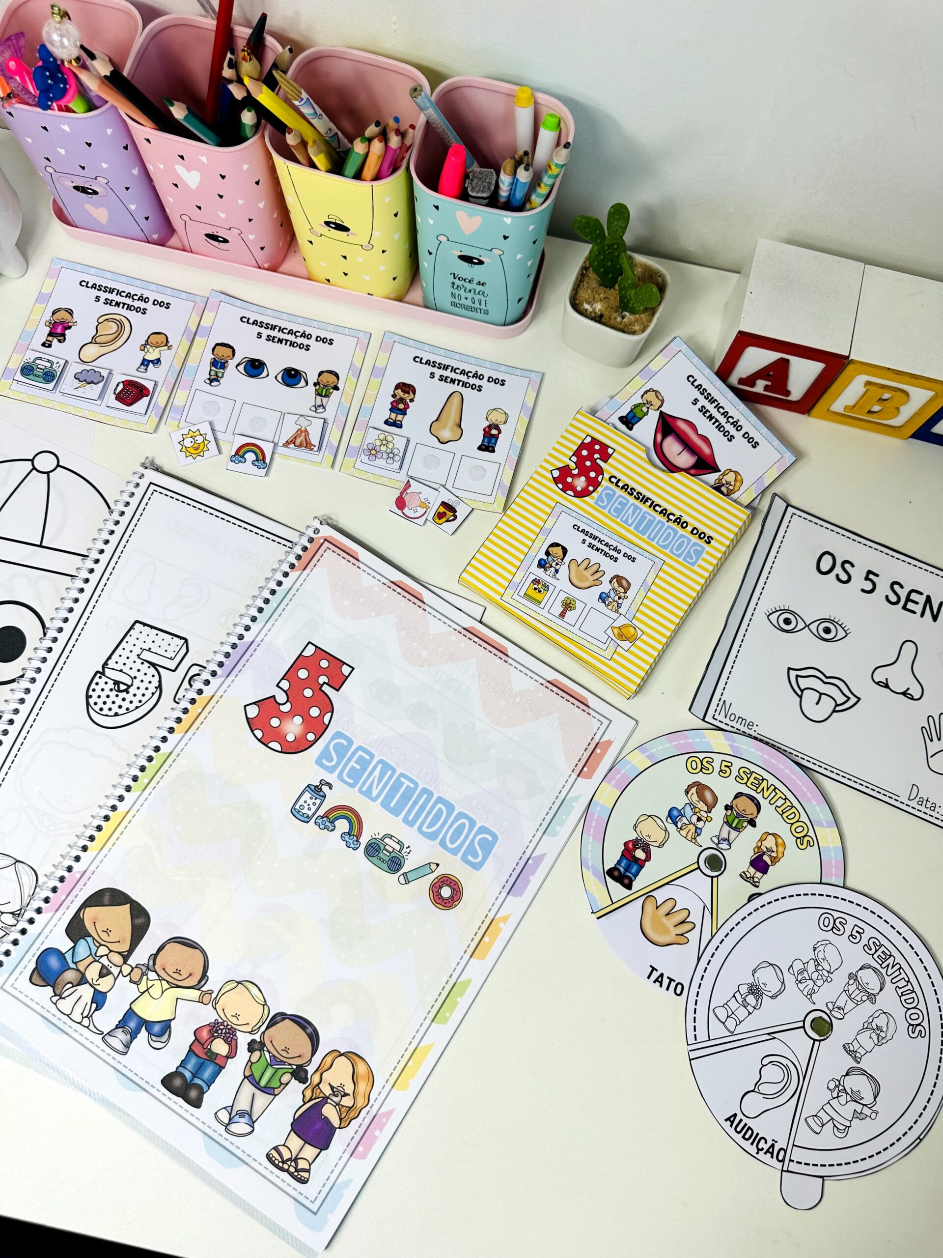 Apostila com 11 páginas para explorar e conhecer cada sentido do nosso corpo (colorida epara colorir)
