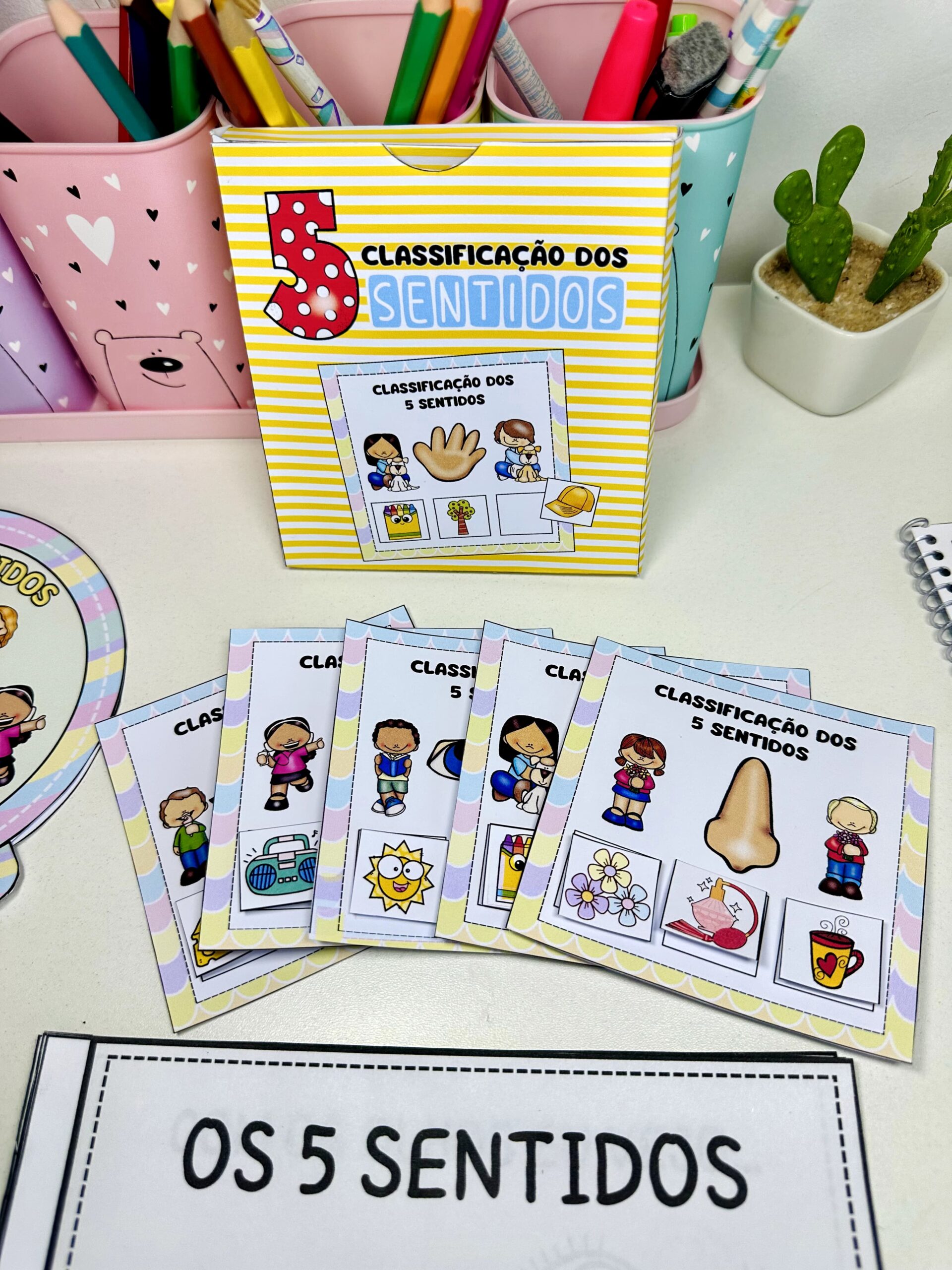 Jogo classificação dos 5 sentidos com 5 cards, figuras