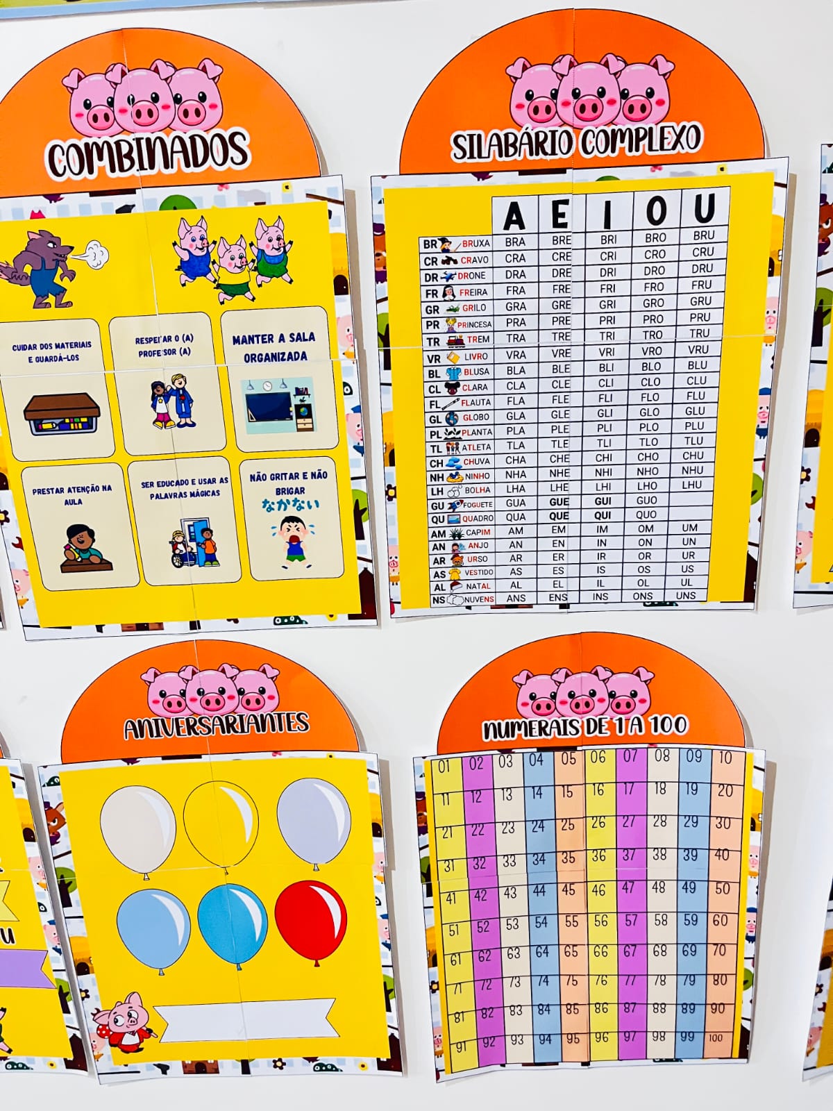 + 17 Painéis de Rotina e Apoio (Tamanho 38x53cm): Cada painel é enviado configurado para impressão em 4 folhas A4, facilitando a montagem em tamanho grande.