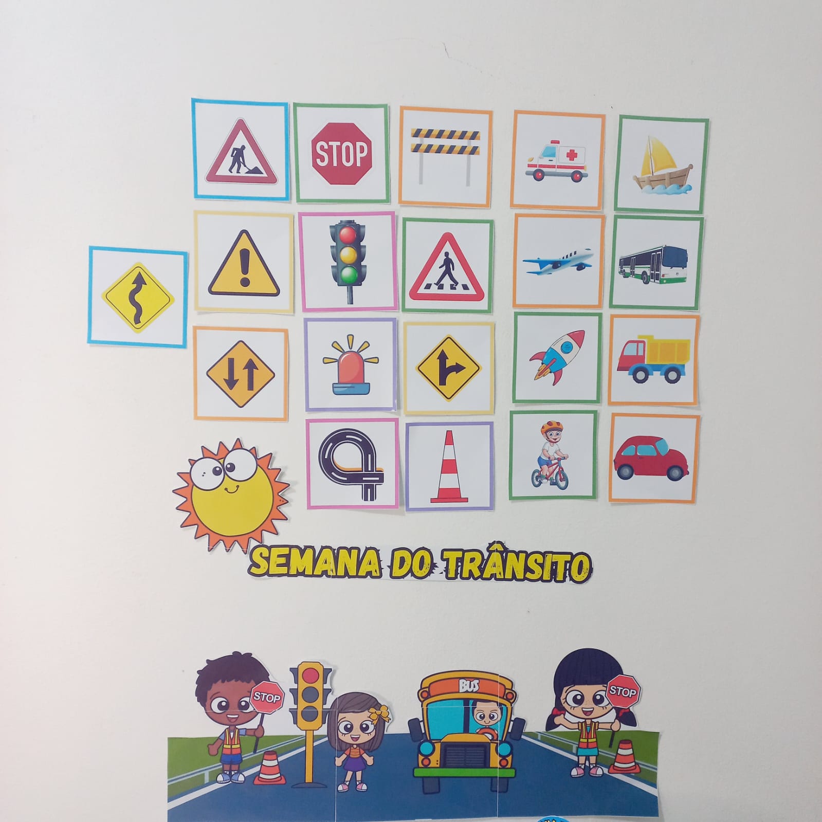 Placas com diversos tipos de transportes