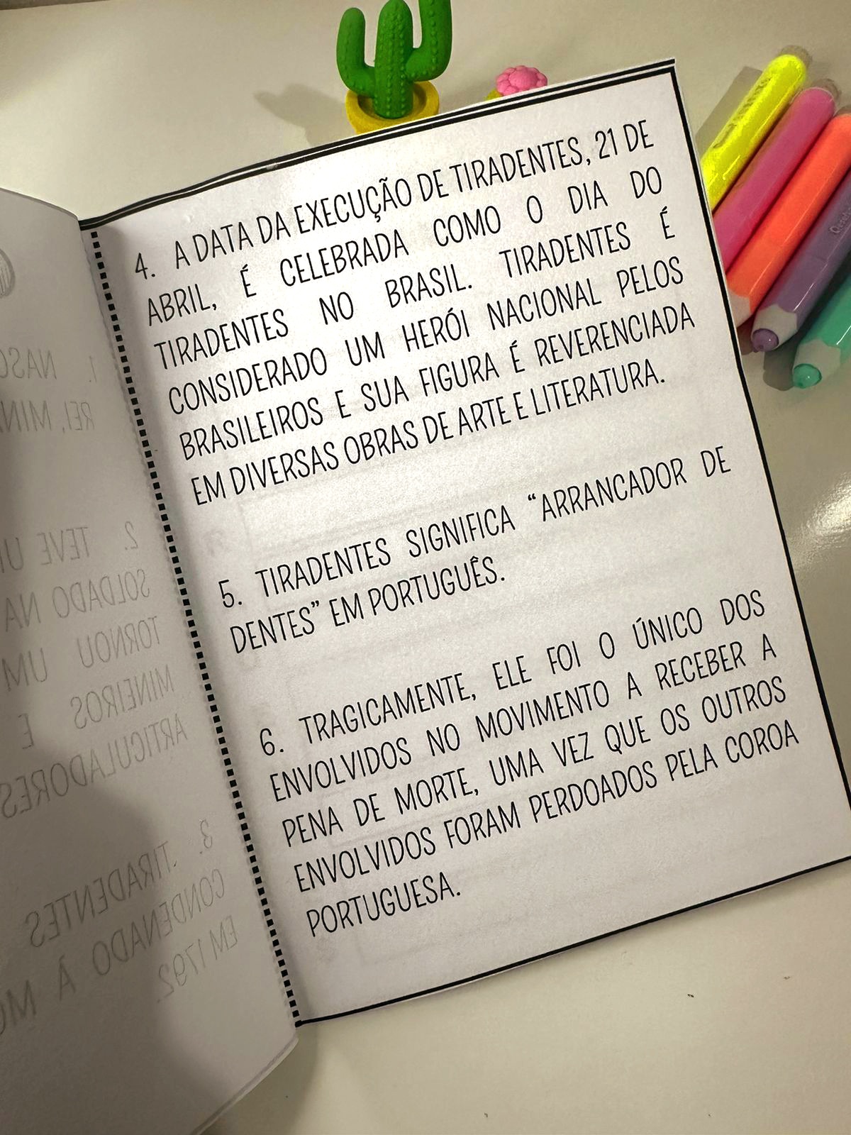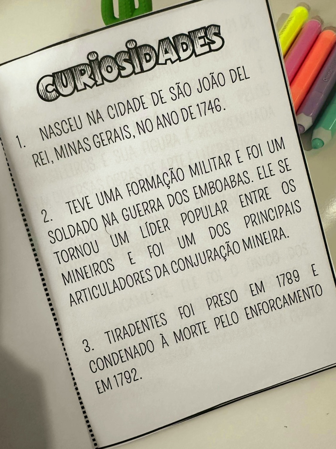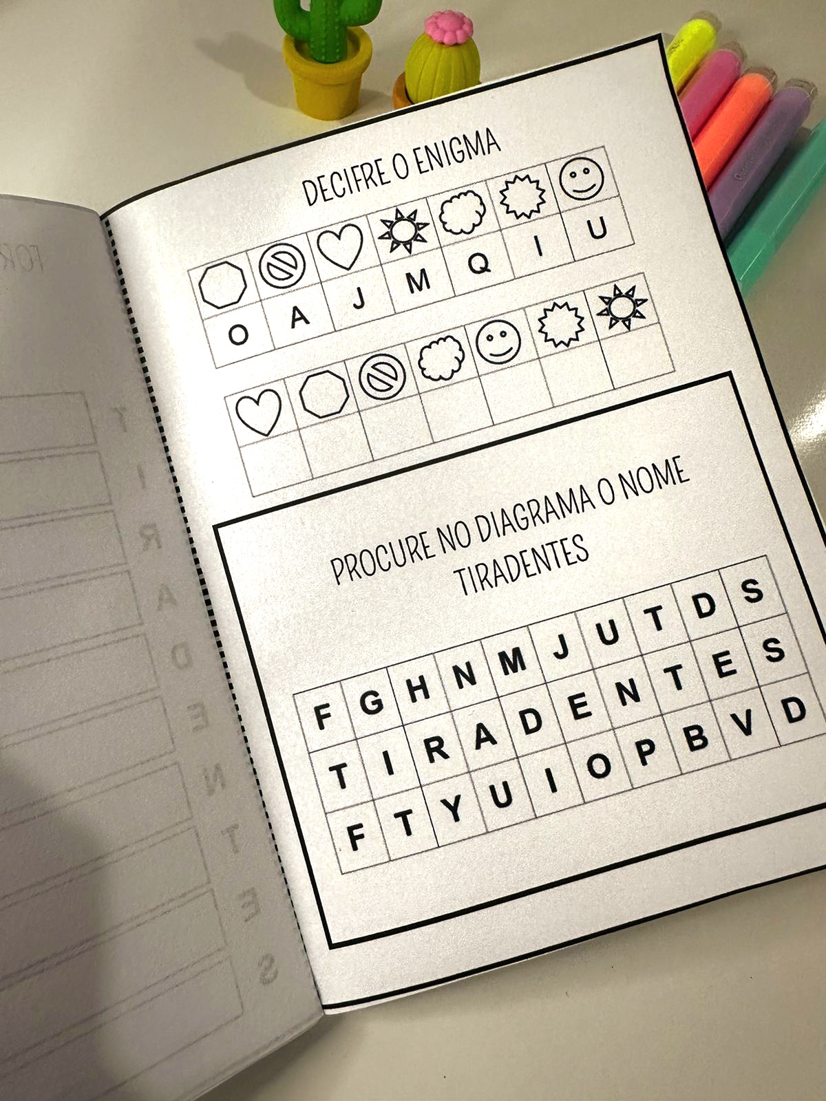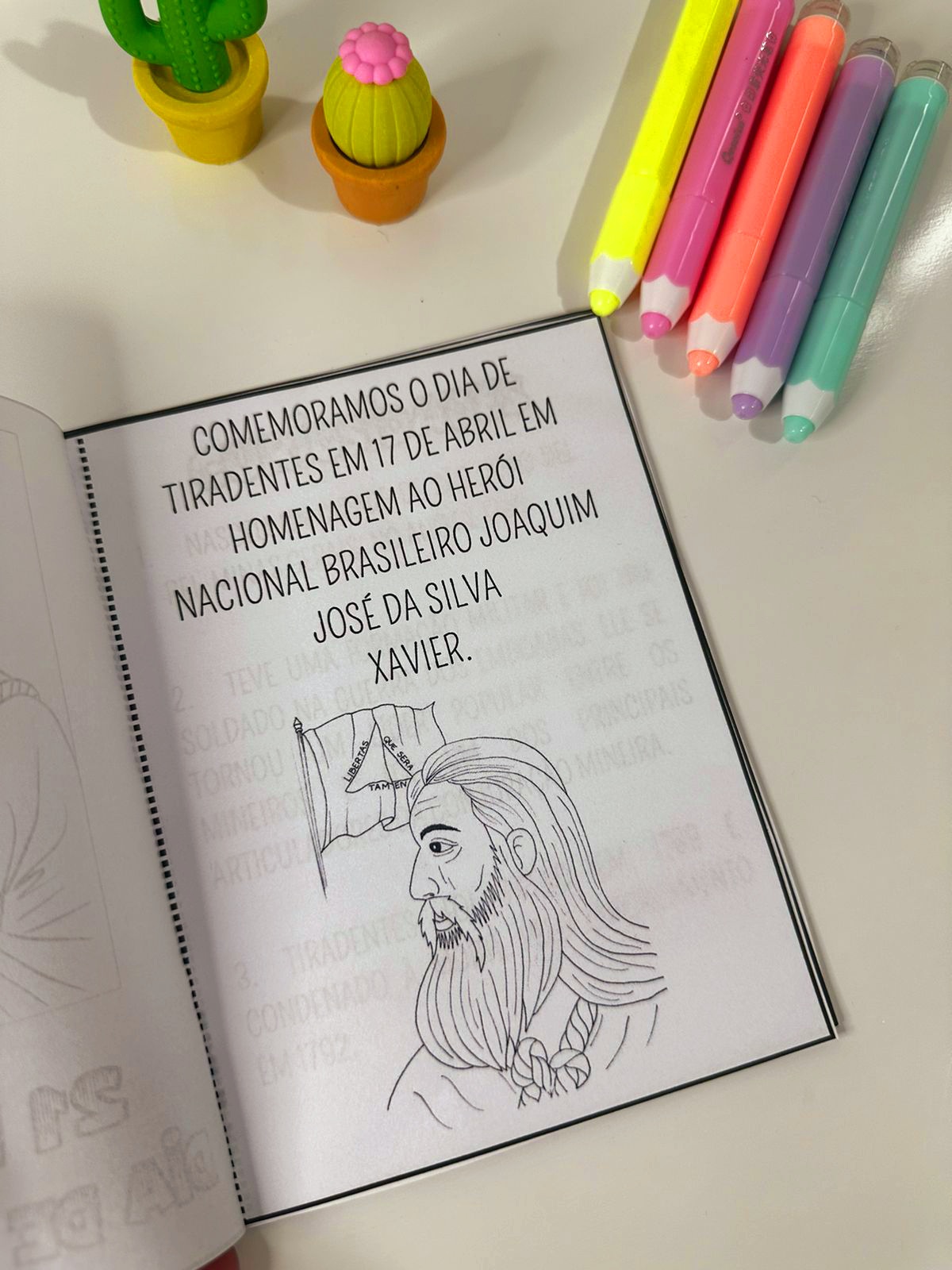 Recurso livrinho que traz narrativa e ilustrações, apresentando de forma acessível e educativa a vida e o legado desse importante personagem da nossa história. Uma leitura essencial para crianças e adultos interessados em conhecer mais sobre o Brasil colonial e a luta pela liberdade.