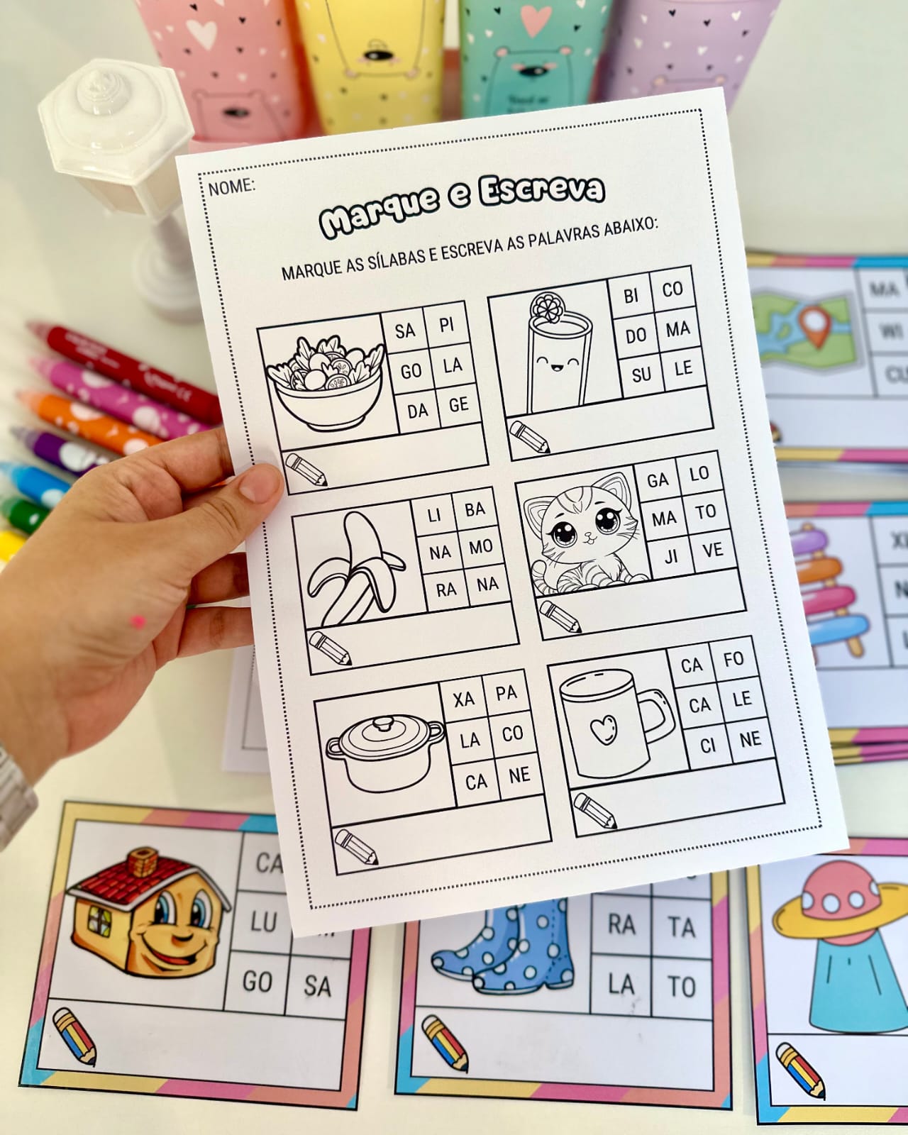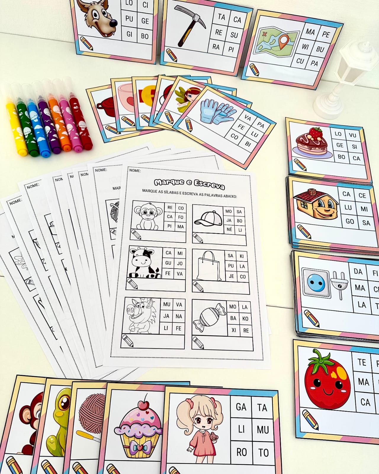 Recurso lúdico para trabalhar reconhecimento e leitura de sílabas e escrita de palavras de sílaba simples em fase de Alfabetização.