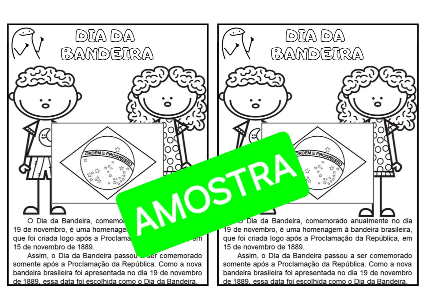 Painéis “15 de novembro – Proclamação da República/ 19 de novembro Dia da Bandeira” com palavras e imagens;