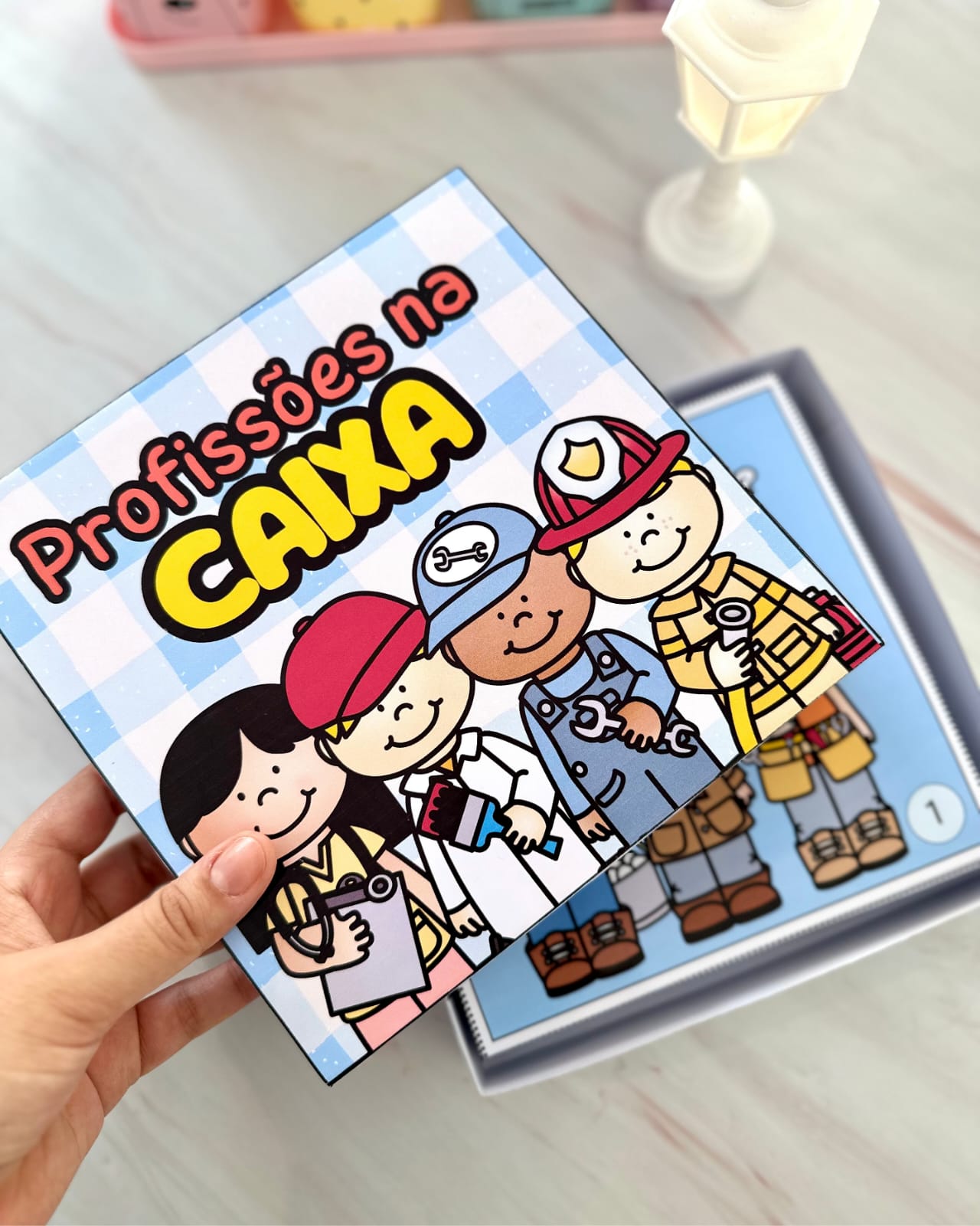 Livrinho colorido na caixa para trabalhar o tema profissões.