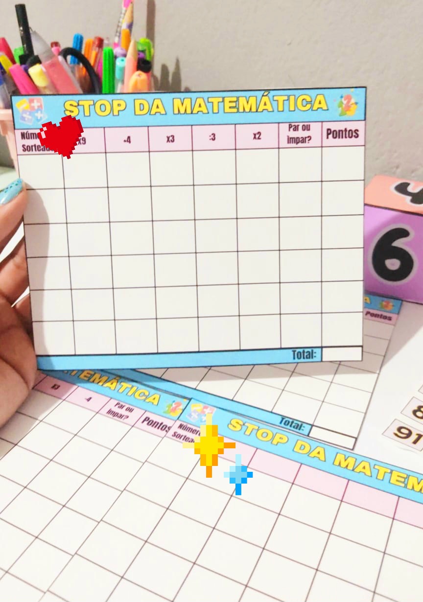 12 fichas de STOP para trabalhar o número sorteado (como seu antecessor e seu sucessor) e operações matemáticas básicas